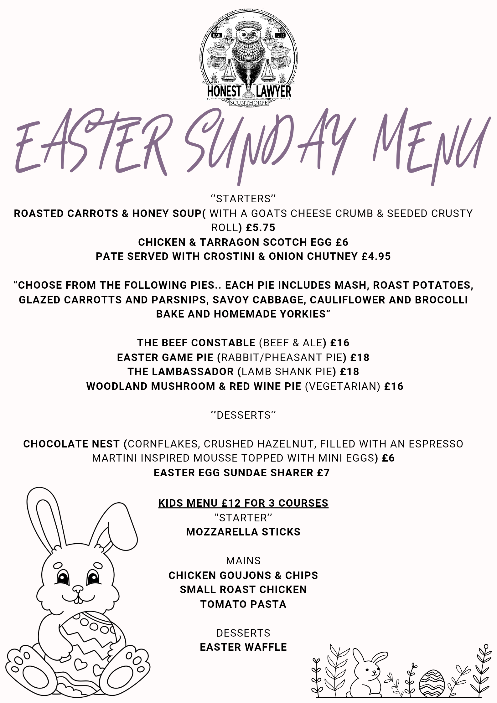 This Easter Sunday, celebrate with the whole family at the Honest Lawyer. With an array of flavoursome and traditional homemade pies to capture the spirit of spring.